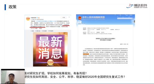 2020年5月9日,博达软件成功召开“研究生导师主页建设研讨会”线上论坛,面向研究生院推出一键开通的导师招生主页,成为复试期间送给高校和导师最好的礼物,引发现场参会老师频频点赞。