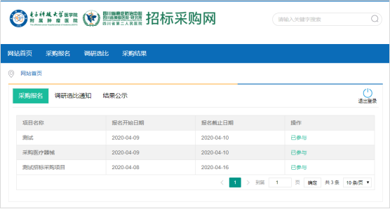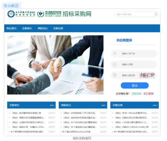 4月20日四川肿瘤医院招标采购管理平台正式上线!招标采购管理平台具有在线操作、无纸运行、信息公开及全程监管等特点,在提高采购透明度、节约交易成本、利用技术手段防止弄虚作假等方面具有独特优势。平台的上线也标志着医院向着无纸化招标采购时代迈出了重要的一步。