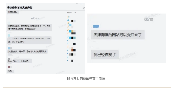 4月5日0:00至3:30 服务团队已成功为193位客户恢复网站原色,并将值班任务统一分配管理,划片区进行客户需求对接,博达软件服务值班团队随时待命、及时出动解决客户难题。除此之外,还有包括开发支持、打补丁、设计师、部署、测试等团队共计55人的支撑团队,即时在线给予支持。
