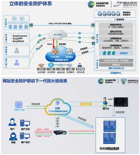深信服则在等保要求下提出立体的安全防护体系——站群托管云解决方案,有效保障客户网络信息安全。