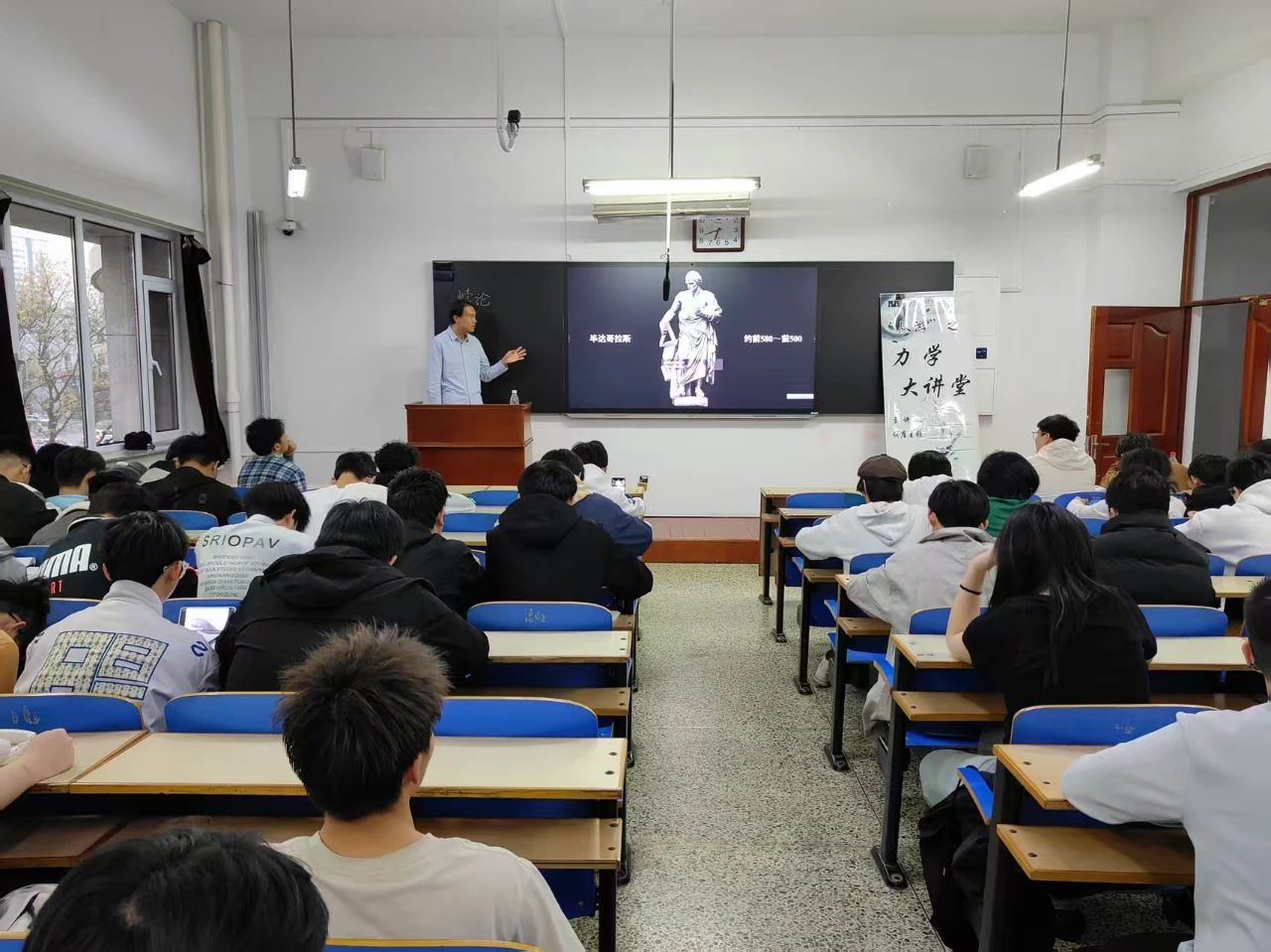 陈震老师将力学的发展划分为了四个阶段:萌芽阶段,力学与哲学、神学交融,古希腊学者提出众多力学问题,为后续发展埋下种子;擎始阶段,伽利略以比萨斜塔实验推翻亚里士多德观点,证明自由落体定律,让力学以科学之姿登场;奠基阶段,牛顿提出力学三定律,搭建起经典力学体系,众多基础理论涌现,筑牢力学根基;现代的全球化阶段,各国学者打破界限,交流合作,推动力学蓬勃发展。陈震老师以钱学森毅然归国投身祖国航天国防事业,冯康在有限元方法上取得新突破等实例,号召同学们传承爱国情怀与科研精神,勇担科技兴国使命。