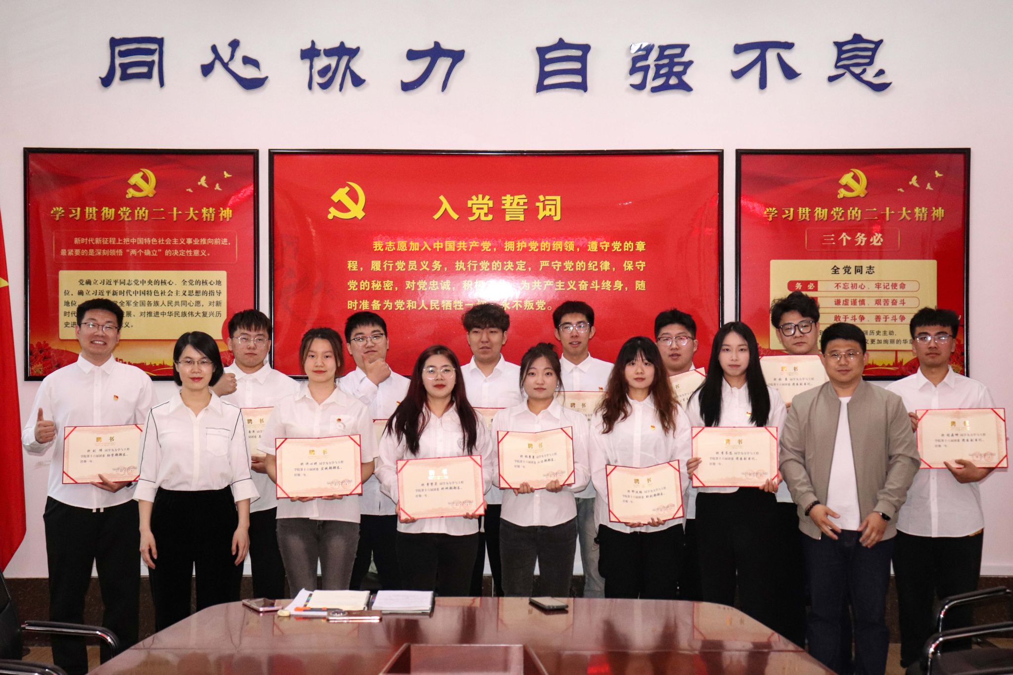 会上,新一届团委成员名单正式公布。两届学生干部完成交接仪式后,第十六届团委副书记张豪、程鼎坤、李岑蕊和各部门学生负责人分别寄语,他们对新一届团委学生干部表示祝贺,对学院共青团工作表达了衷心祝福。学长学姐将手中的接力棒传递了下去,希望新一届的学生干部能够戒骄戒躁,充分发扬“同心协力,自强不息”的院训精神,在接下来的学习工作中勇挑重担,开拓创新,展现学院团员青年的青春风采,为学院学生工作发展作出积极贡献。