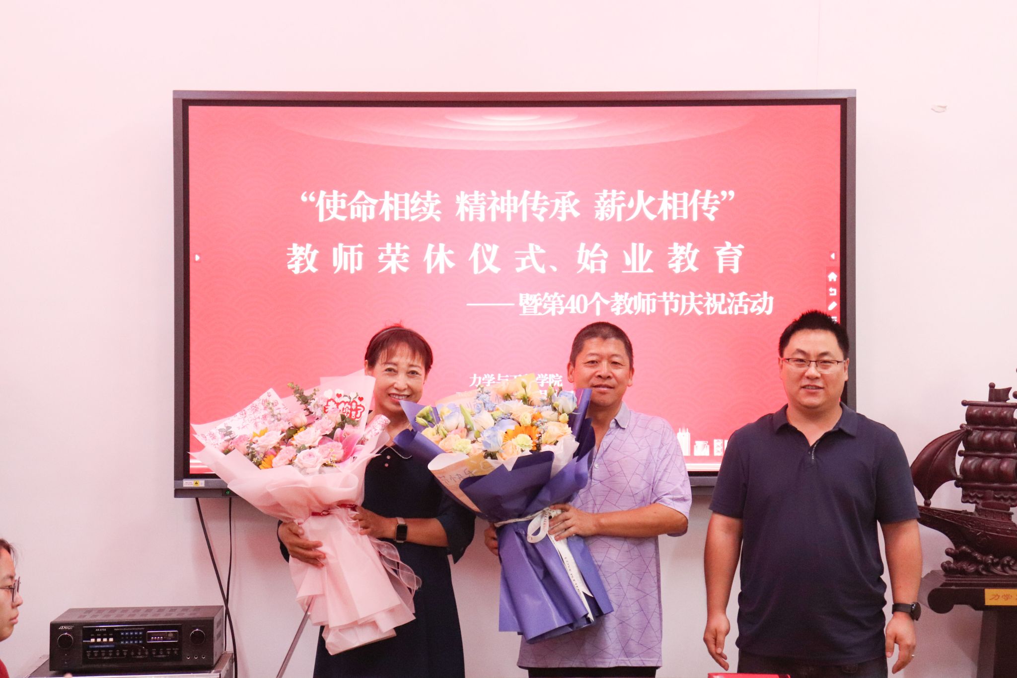 (通讯员:解书华)师道传承,感恩有您。为庆祝第40个教师节,表达对退休教师的敬意,激励新一代青年教师不忘初心、赓续奋斗,9月10日,金沙集团wwW3354CC在建业楼会议室举办“使命相续 精神相承 薪火相传”教师荣休仪式、始业教育暨第40个教师节庆祝活动。学院党委副书记王丽宏主持活动,并代表学院向全体教师致以节日的祝贺和诚挚的问候。