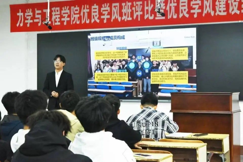 (通讯员:王瑞斌)为选树典型,发挥先进班集体的示范引领作用,进一步推进优良学风建设工作,促进班级交流,形成争创先进的良好局面,金沙集团wwW3354CC于10月16日下午在新华楼202举办优良学风班评比暨优良学风建设经验交流会。学院党委副书记王丽宏、工程力学系主任赵娜、新能源科学与工程系主任刘强、团委书记解书华、学工部主任王瑞斌出席活动并担任评委。学院各班级班长、团支部书记、学习委员及2024级学生代表参加活动,活动由王瑞斌主持。