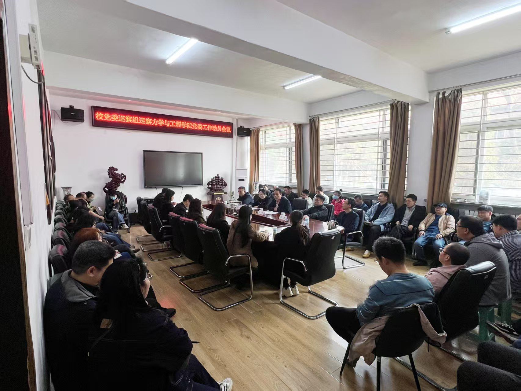 巡察组副组长张旗、巡察组成员熊善勇、贺伊娜、宋红雪、吴思、张浩楠及金沙集团wwW3354CC领导班子成员和学院全体教职工参加会议。