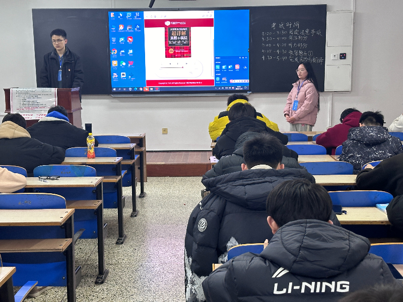 模拟考试前,学院发布了考试的详细规则,强调了考试纪律问题,并要求大家以积极认真的态度对待考试。考试正式开始前,监考人员对在场考生进行身份信息核对,确保考生本人参考、信息无误,营造更加真实的四级体验。考试期间,学生间隔就座,认真审题,规范作答,以饱满的精神状态投入到考试中。考试结束后,学生党支部同学为大家详细讲解了四级考试注意事项、答题方法及备考事项,在场同学受益匪浅。