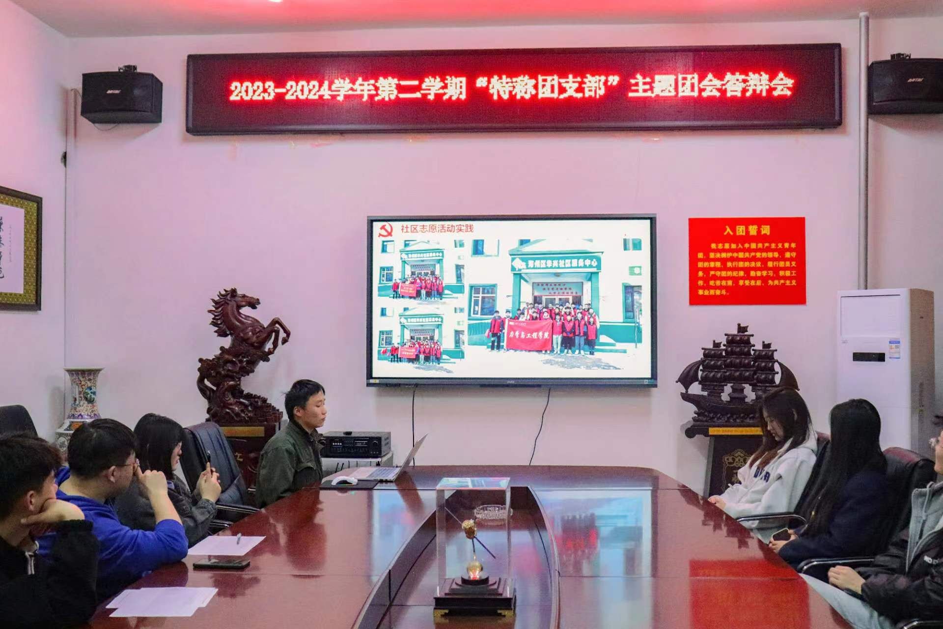 会议伊始,学院团委书记解书华对金沙集团wwW3354CC近期共青团重点工作进行了梳理,重点讲解推优入党、团员发展、“三会两制一课”制度和金沙集团wwW3354CC基层团组织规范建设等工作,并与同学们共同学习了2024年团的基层建设总体要求、团员队伍建设和基层团组织规范化建设等内容。