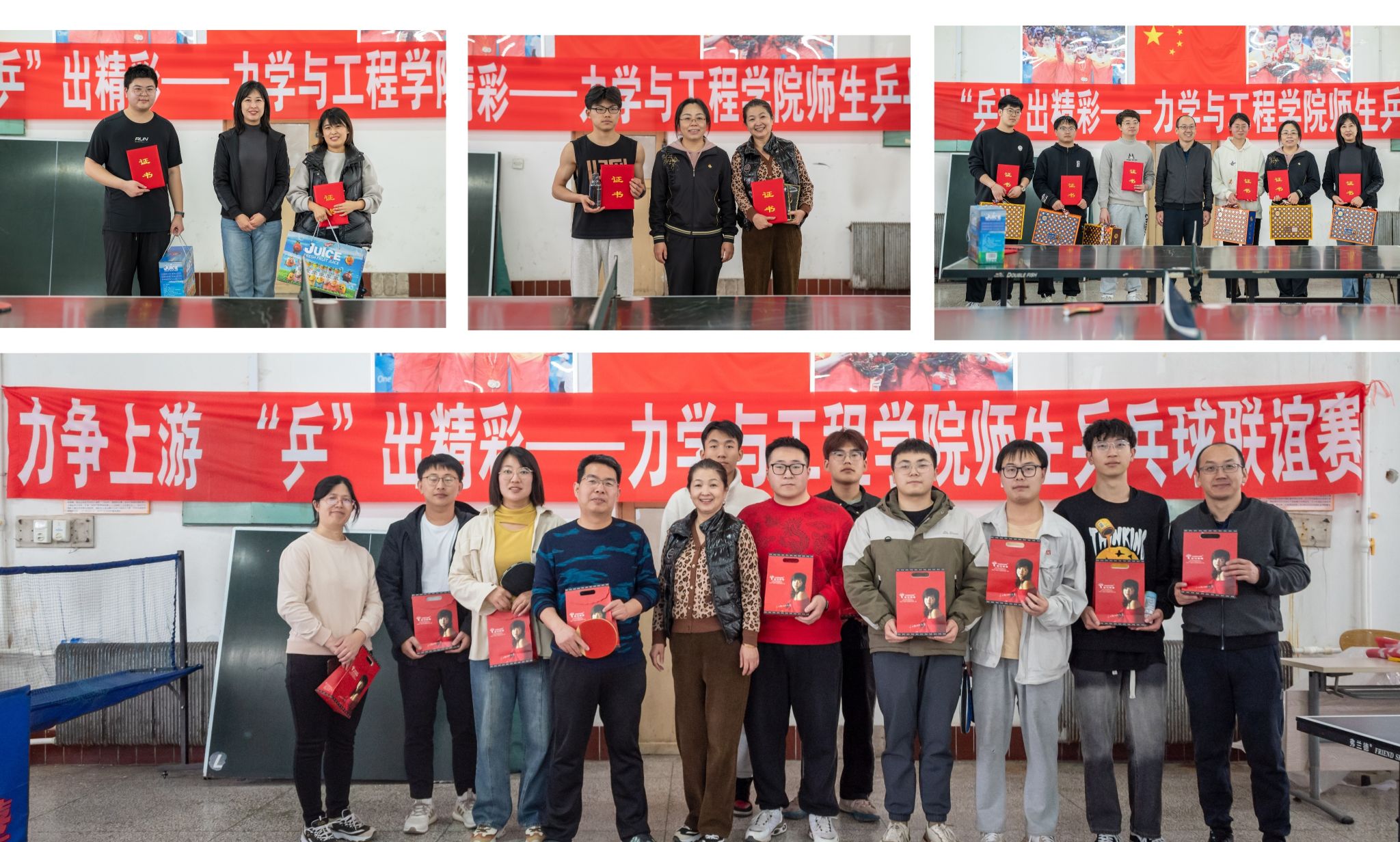 本次乒乓球赛共有26名参赛选手,项目分别为师生男子单打、师生女子单打、师生单打双打友谊赛。比赛过程中参赛选手们以球会友、各显身手,时而激情扣杀,时而专注防守,充分诠释着力学人的拼搏进取精神。场下观众为选手加油喝彩,师生同心协力,比赛气氛友好热烈。