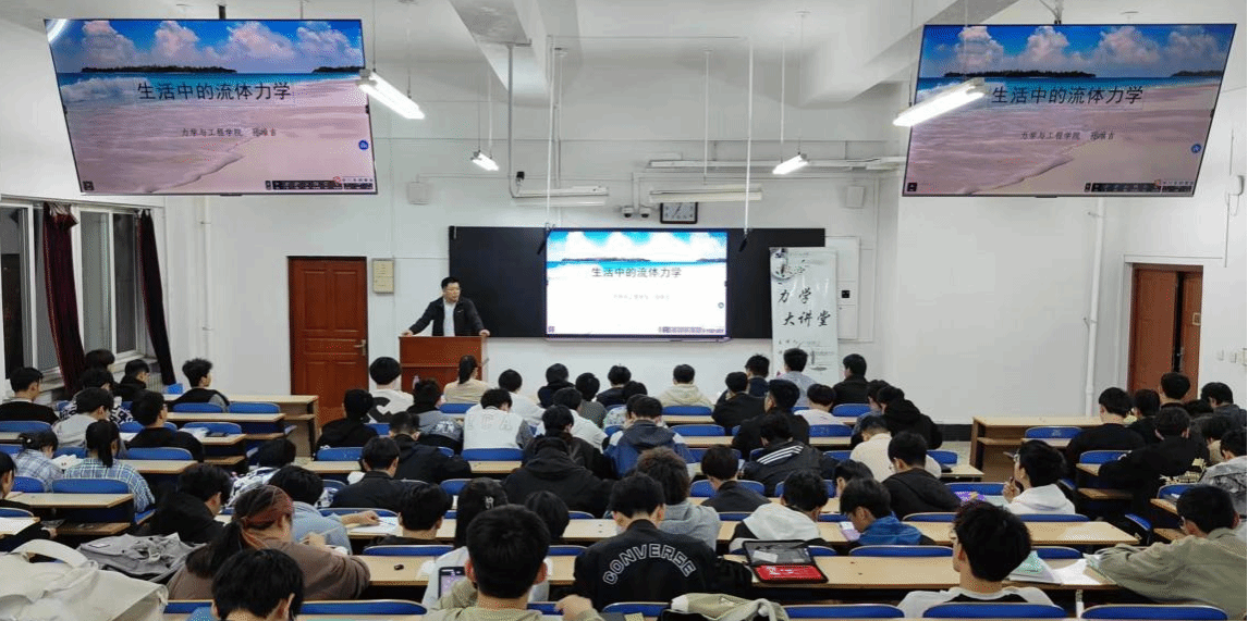 孙院长做了以《流体力学的生活中的应用》为题的讲座。他结合自身的实践经验和研究成果,围绕流体力学的五方面应用进行了讲授。包括:1、自然界中的流体力学。如海浪、潮汐、洋流运动等现象都可以通过流体力学理论来解释和预测;2、航天航空中的流体力学。航空航天工程是一门涉及飞机、火箭、卫星等空间飞行器设计和制造的学科,流体力学分析与优化是其重要领域之一;3、机械设计中的流体力学。通过了解流体力学的基本概念和原理,可以更好地理解机械系统中流体的现象,并应用于实际的机械设计中;4、土木工程中的流体力学。土木工程师通过对流体力学原理的应用,分析和预测水文、气象等自然现象,能够更好地设计和建造各种水利、交通等工程项目,提高其可靠性和稳定性;5、生物医学中的流体力学。在生物医学领域的应用涉及到如血液循环、呼吸系统、心血管疾病等多个方面。又以地球大气环流、涡旋、湍流、飞机机翼等现实中的例子深入浅出地为同学们进行了更加详细的讲解和分析。