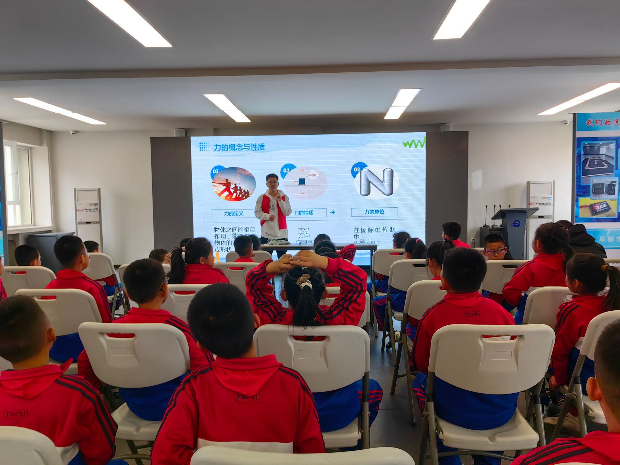 志愿者们迅速投入工作,有的协助主讲人开展演示项目,有的耐心解答小朋友的问题,有的帮助维持秩序保障观众安全,还有的为小朋友介绍各种活动项目。青春洋溢的脸庞,热情饱满的态度,温馨周到的服务,为科技馆增添了一道亮丽的色彩。在“力学探索之旅”小课堂环节,志愿者们从力学基础知识、力的分类、力学实验、生活中力学原理等多个方面进行科普。在动手实验环节,志愿者介绍了“拽不开的毛巾”、“奔走的铁环”两个有趣的实验,并让学生亲手操作,在实践中掌握其中的力学原理。